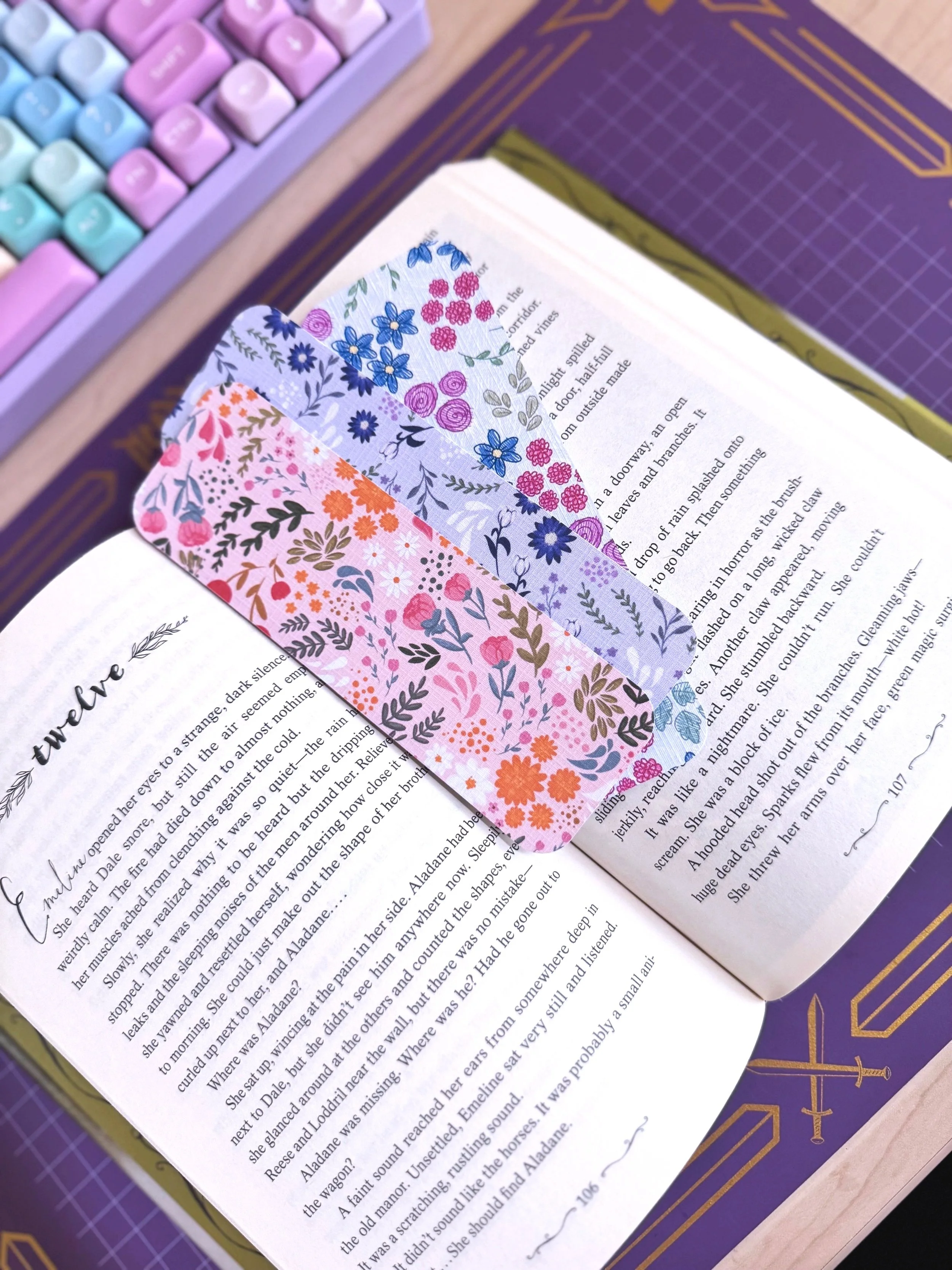 Set of 3 floral bookmarks, printed on beautiful linen cardstock.